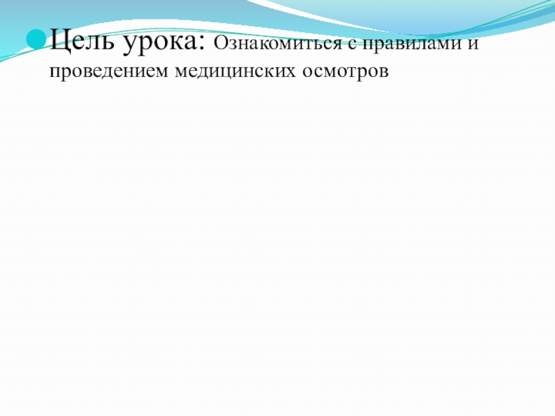 Слайд 2Цель урока: Ознакомиться с правилами и проведением медицинских осмотров