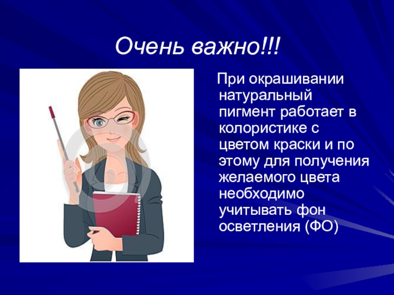 Очень важно!!!  При окрашивании натуральный пигмент работает в колористике с цветом краски и по этому для