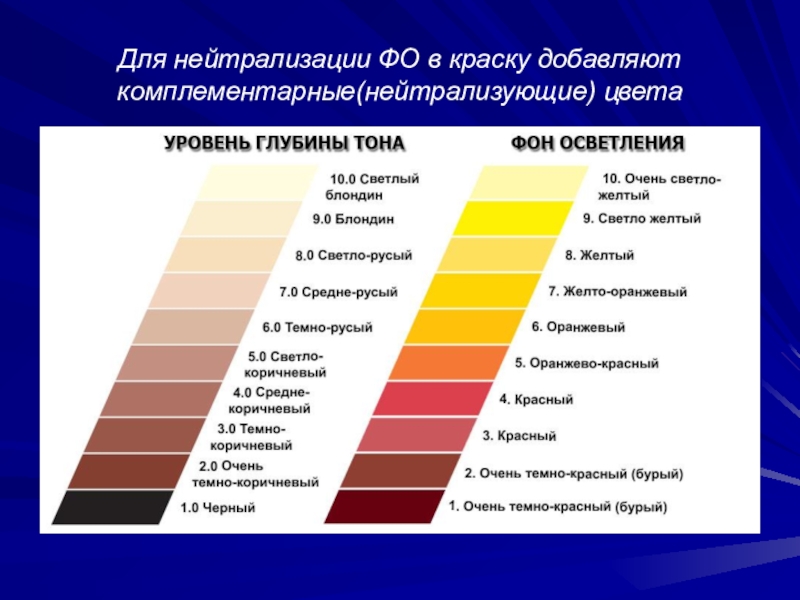 цветом краски и по этому для получения желаемого цвета необходимо учитывать фон осветления (ФО)