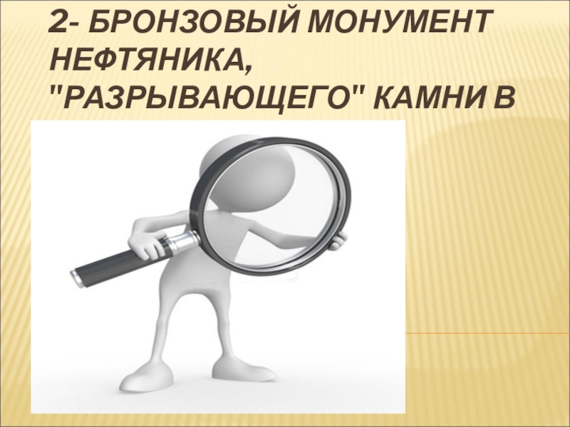 Слайд 42- БРОНЗОВЫЙ МОНУМЕНТ НЕФТЯНИКА, "РАЗРЫВАЮЩЕГО" КАМНИ В ПОИСКАХ НЕФТИ