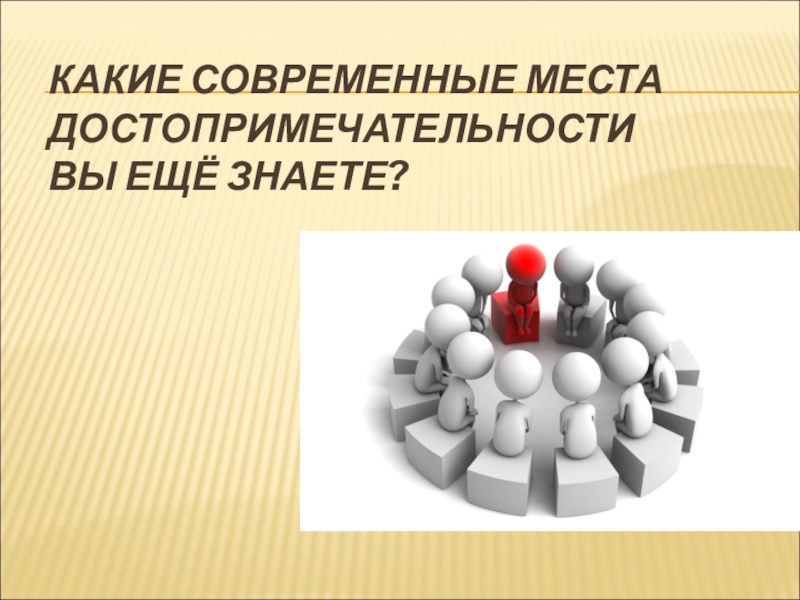 Слайд 10КАКИЕ СОВРЕМЕННЫЕ МЕСТА ДОСТОПРИМЕЧАТЕЛЬНОСТИ ВЫ ЕЩЁ ЗНАЕТЕ?
