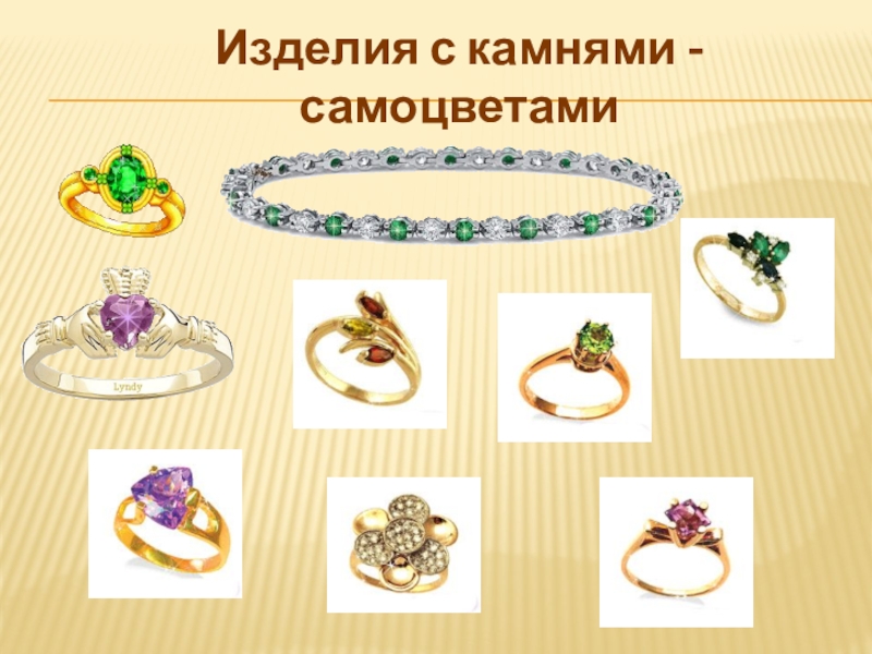 Слайд 36Изделия с камнями - самоцветами