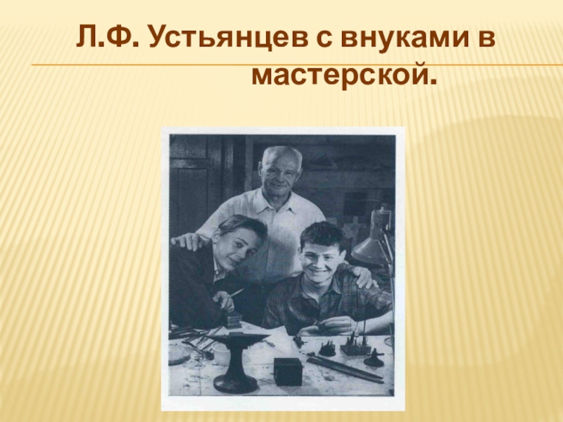 Слайд 32Л.Ф. Устьянцев с внуками в