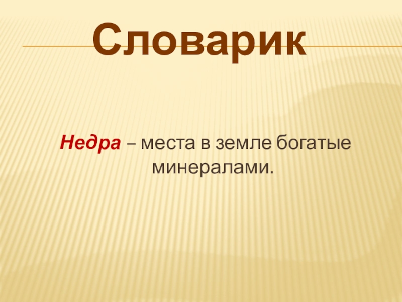 Словарик Недра – места в земле богатые минералами.