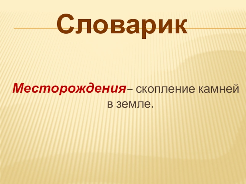 СловарикМесторождения– скопление камней в земле.