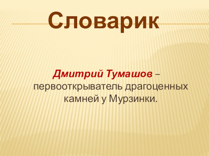 Словарик Дмитрий Тумашов – первооткрыватель драгоценных камней у Мурзинки.