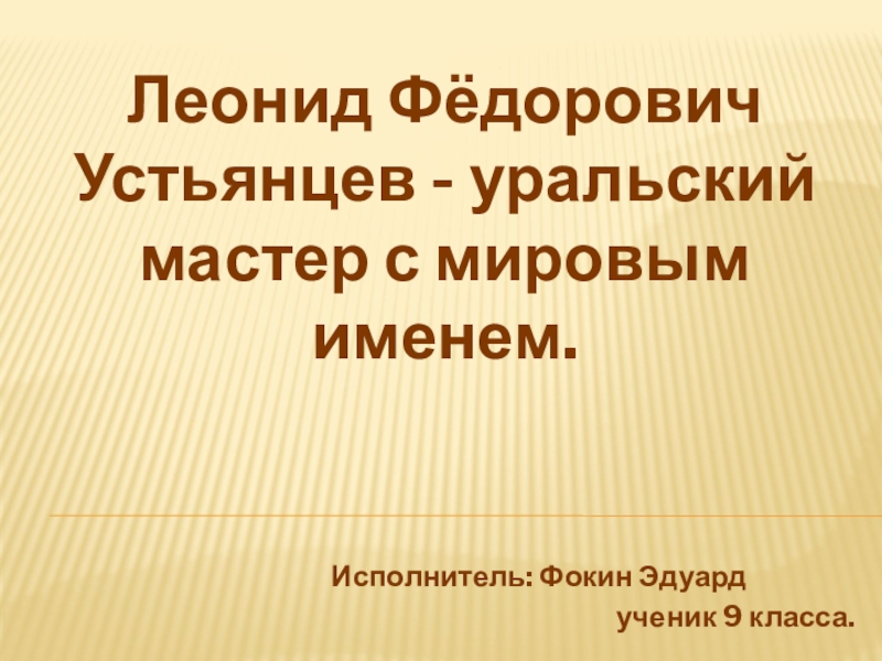 Слайд 21Леонид Фёдорович Устьянцев - уральский мастер с мировым именем.