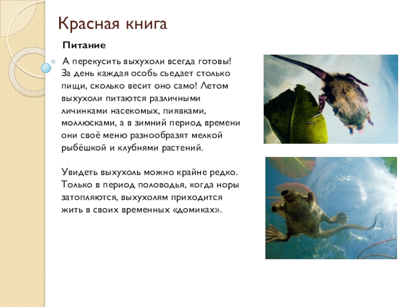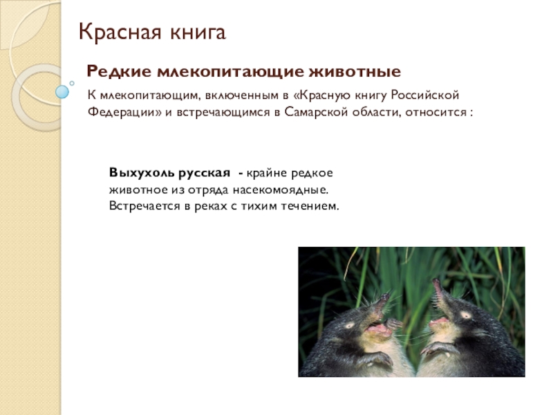 Выхухоль русская - крайне редкое животное из отряда насекомоядные. Встречается в реках с тихим течением.