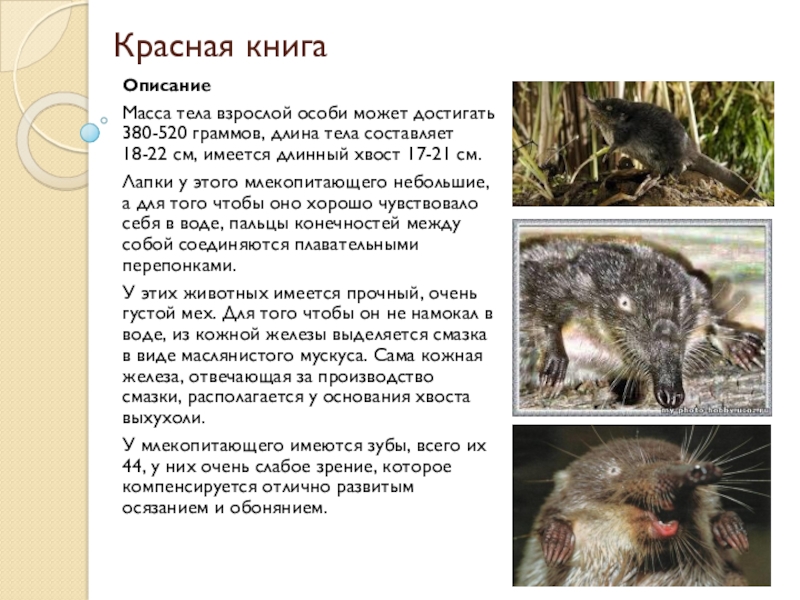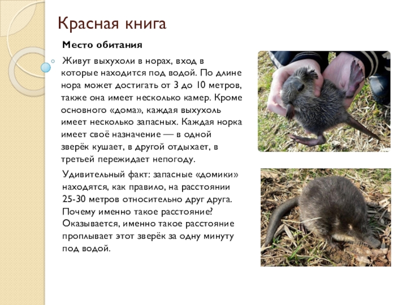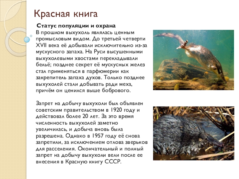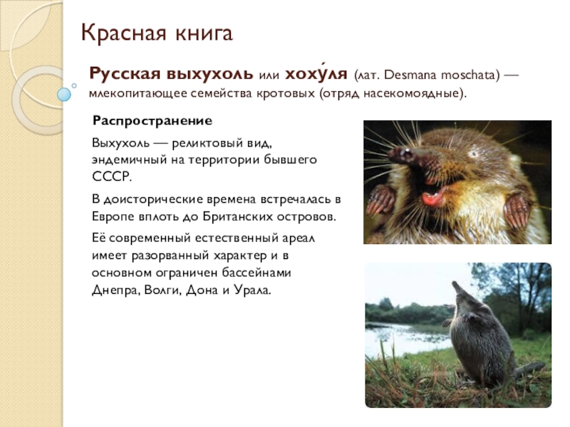Выхухоль — реликтовый вид, эндемичный на территории бывшего СССР.