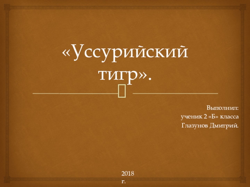 «Уссурийский тигр».Выполнил:ученик 2 «Б» классаГлазунов Дмитрий. 2018 г.