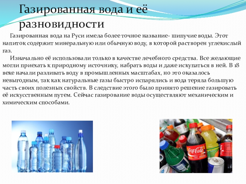 простой воды. Это известно всем. Но многообразие напитков на прилавках магазинов расширяет наш выбор, предлагая и газированную минеральную воду, и сладкие газированные напитки.
