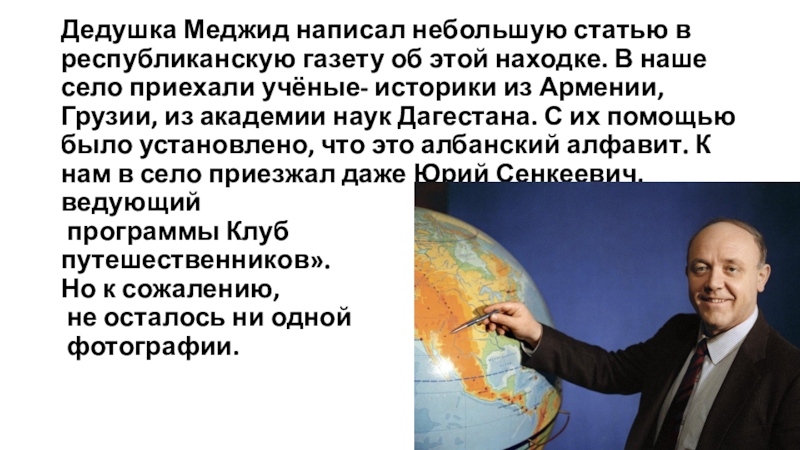 Слайд 7Дедушка Меджид написал небольшую статью в республиканскую газету об этой находке.