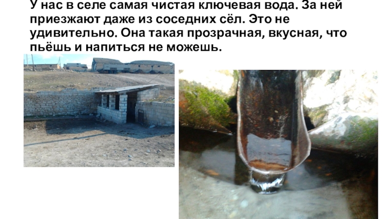 Слайд 15У нас в селе самая чистая ключевая вода. За ней приезжают