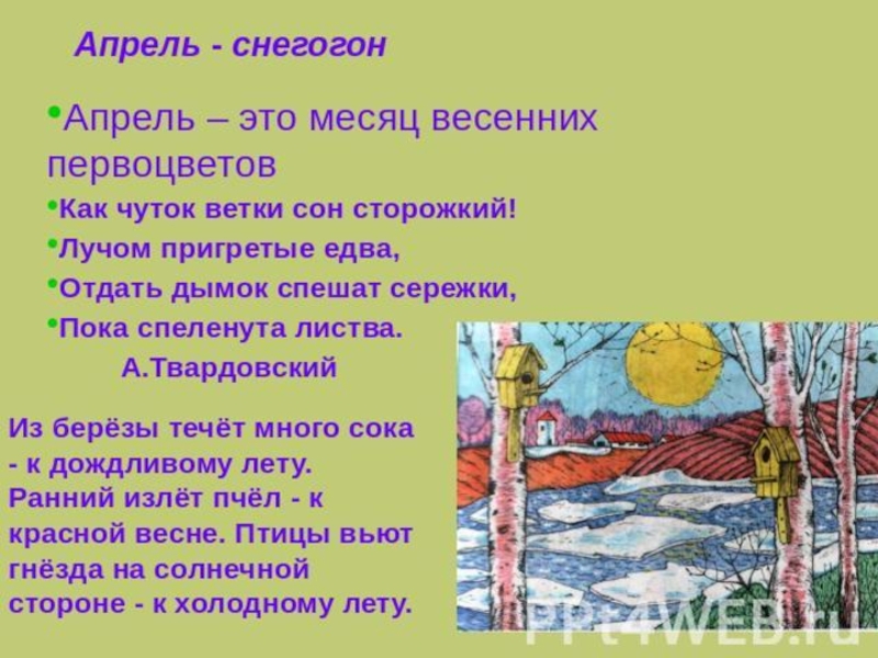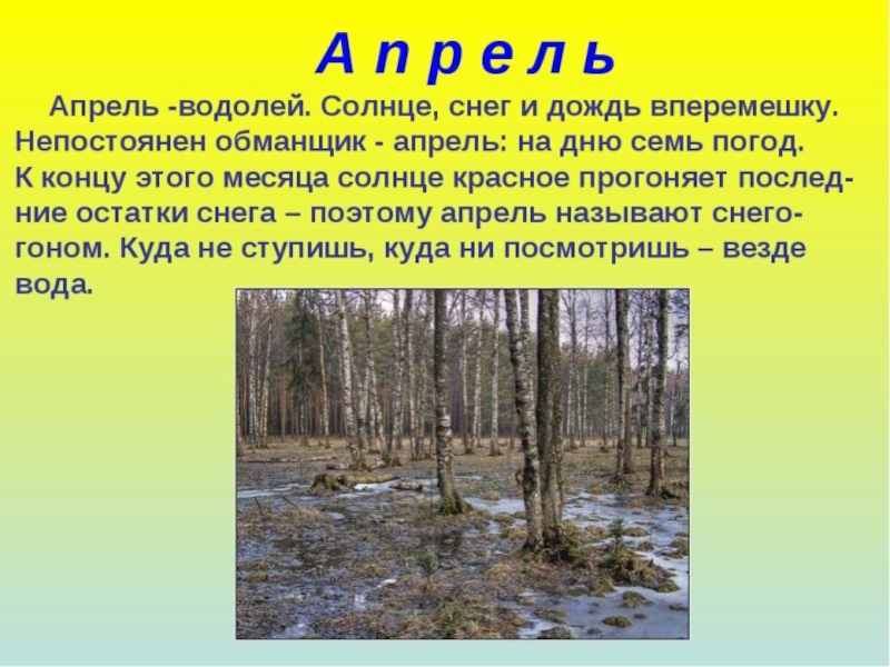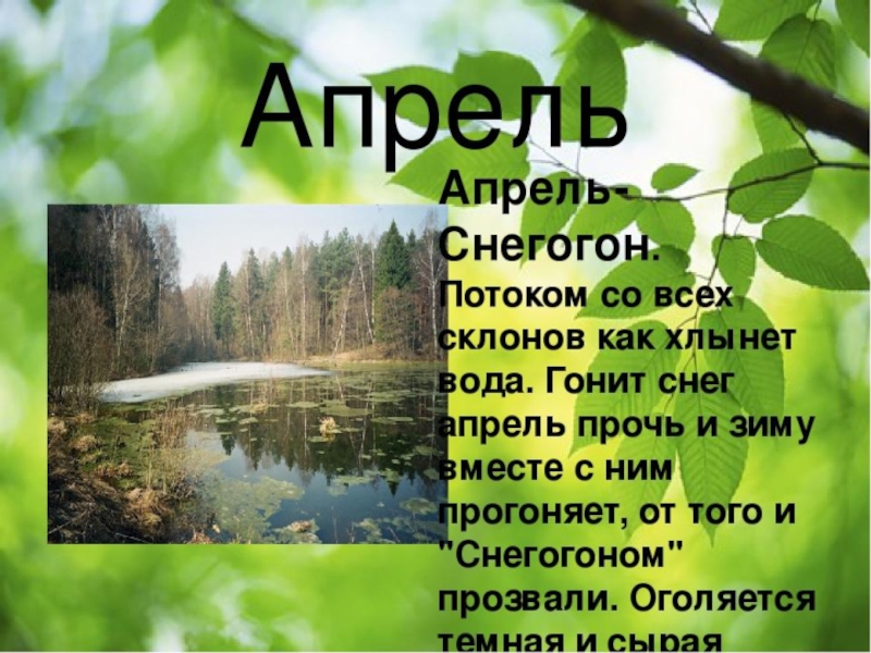 Презентация, доклад по Окружающему миру на тему: Апрель, на дворе стоит капель