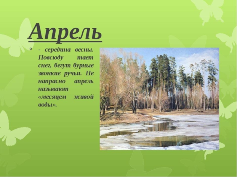 Презентация по Окружающему миру на тему: Апрель, на дворе стоит капель Разное