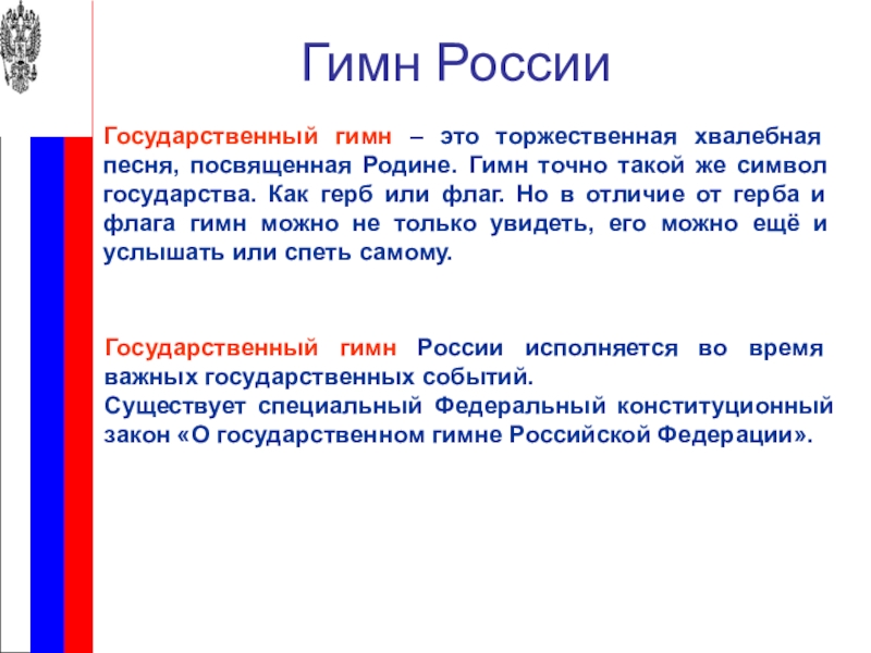 Существует специальный Федеральный конституционный закон «О государственном гимне Российской Федерации».