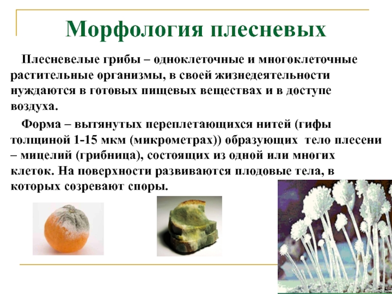 Плесневелые грибы – одноклеточные и многоклеточные растительные организмы, в