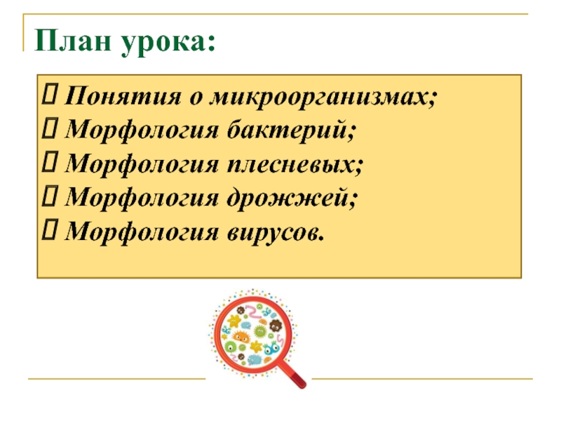 Понятия о микроорганизмах;