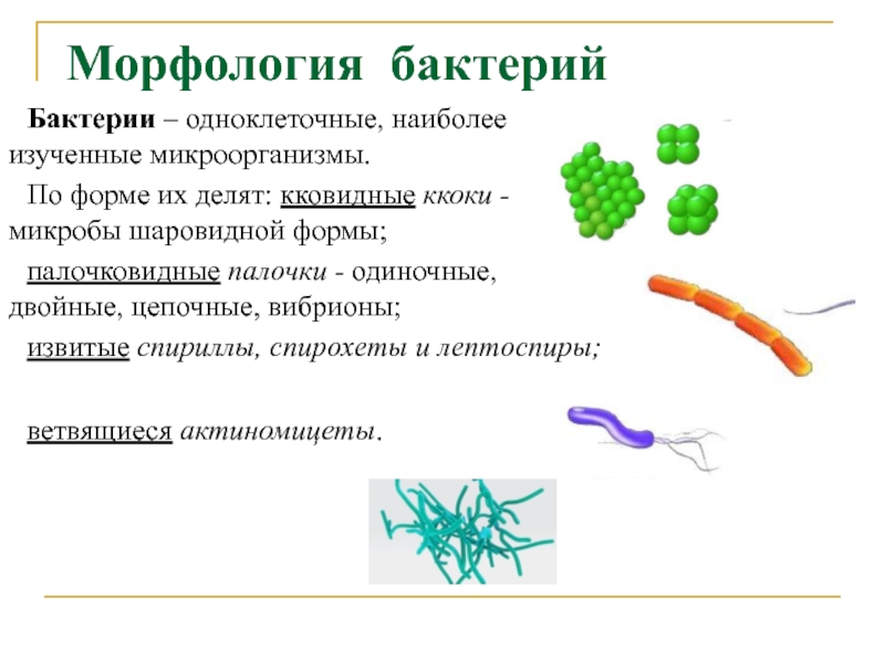 Бактерии – одноклеточные, наиболее изученные микроорганизмы.
