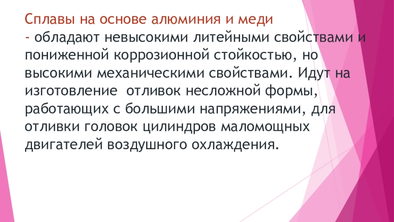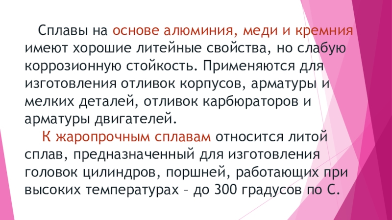 Слайд 9 Сплавы на основе алюминия, меди и кремния имеют хорошие