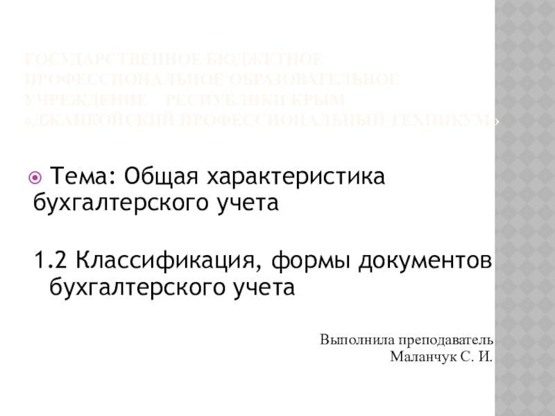 1.2 Классификация, формы документов бухгалтерского учета