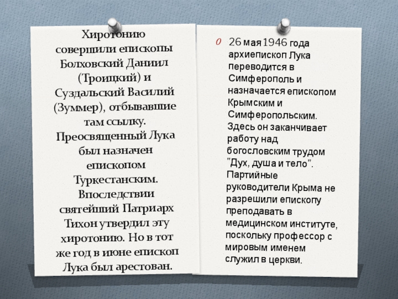 Слайд 13В 1946 г. его переводят на Крымскую кафедру. Уже больной, архиепископ
