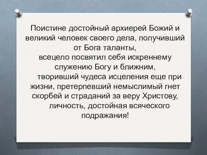 Слайд 22Поистине достойный архиерей Божий и великий человек своего дела, получивший от