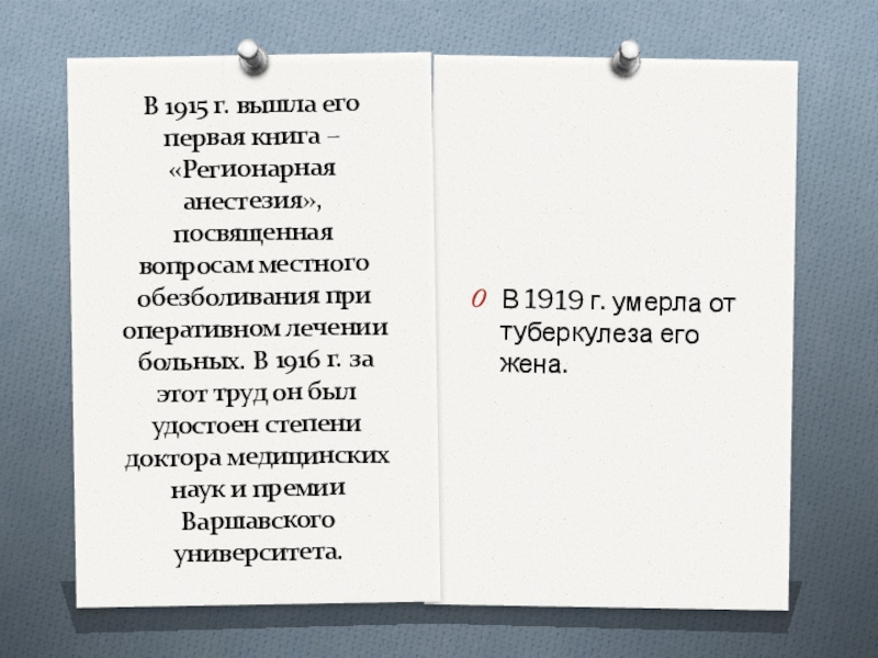 Слайд 5В 1915 г. вышла его первая книга – «Регионарная анестезия», посвященная