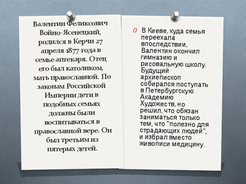 Слайд 2Валентин Феликсович Войно-Ясенецкий, родился в Керчи 27 апреля 1877 года в