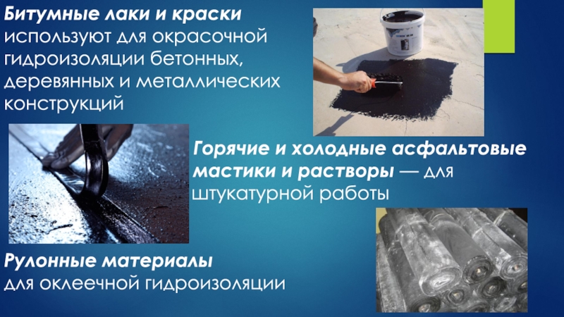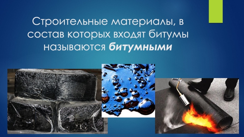 Слайд 2Строительные материалы, в состав которых входят битумы называются битумными