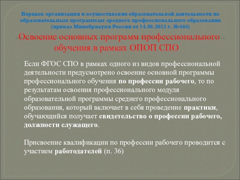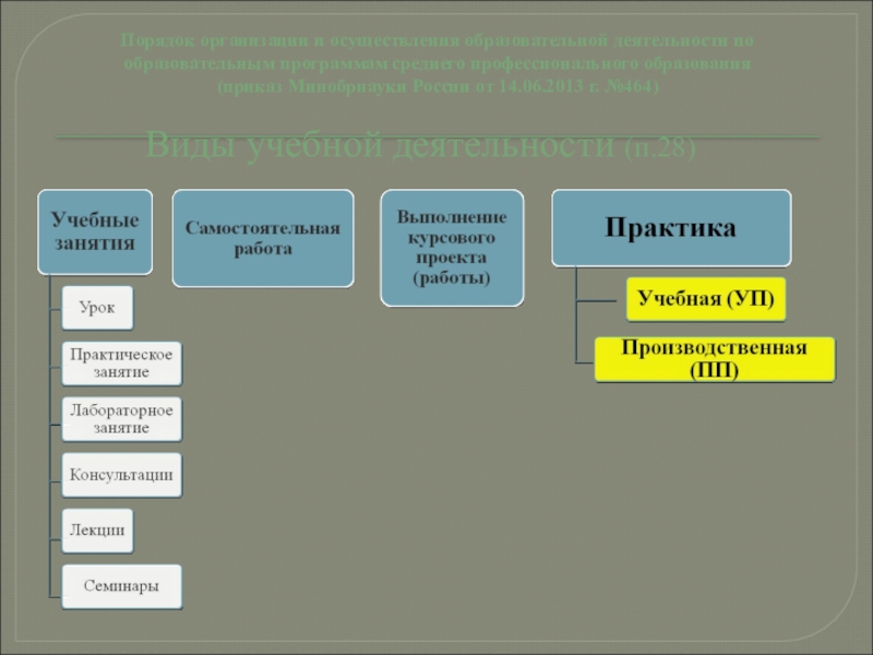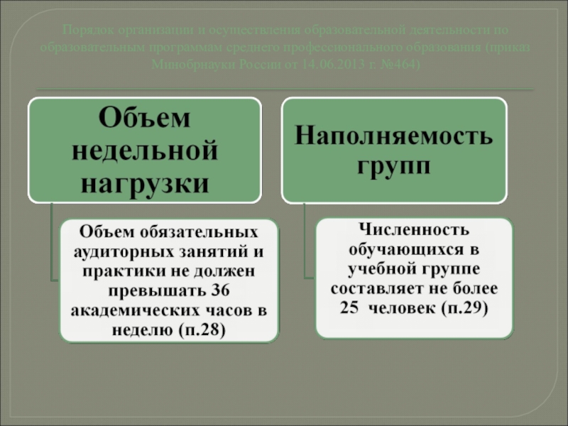 Порядок организации и осуществления образовательной деятельности по образовательным программам среднего профессионального образования (приказ Минобрнауки России от 14.06.2013 г. №464)