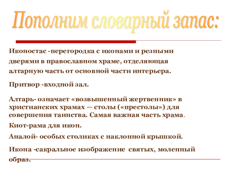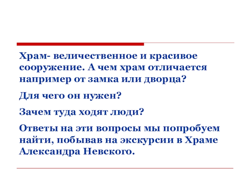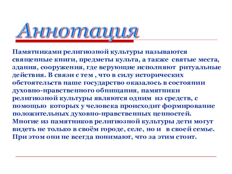 Ознакомить учащихся с памятниками религиозной культуры на примере православных храмов.