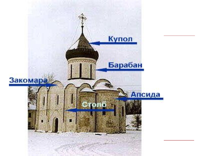 Закомара -в русской архитектуре полукруглое или килевидное завершение части наружной стены здания; как правило, повторяет очертания расположенного за ней свода.