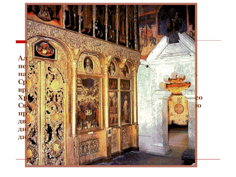 Иконостас -перегородка с иконами и резными дверями в православном храме, отделяющая алтарную часть от основной части интерьера.