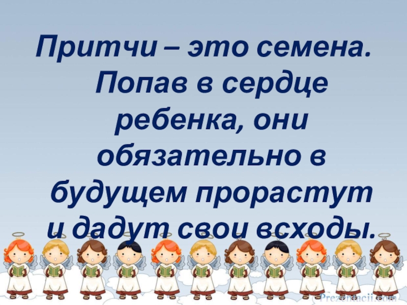 Слайд 15Притчи – это семена. Попав в сердце ребенка, они обязательно в