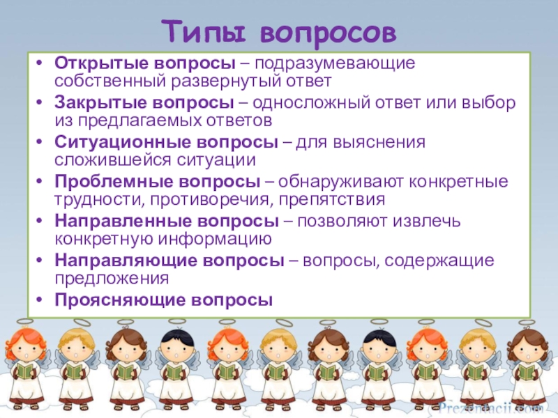 Ситуационные вопросы – для выяснения сложившейся ситуации