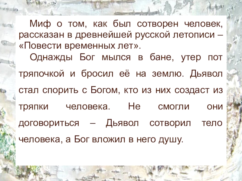 Миф о том, как был сотворен человек, рассказан в древнейшей русской