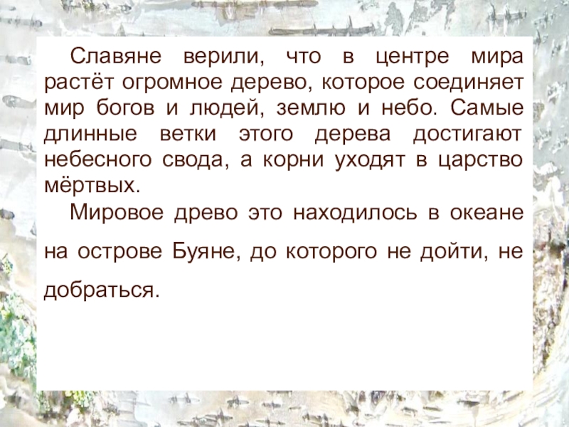 Славяне верили, что в центре мира растёт огромное дерево, которое соединяет
