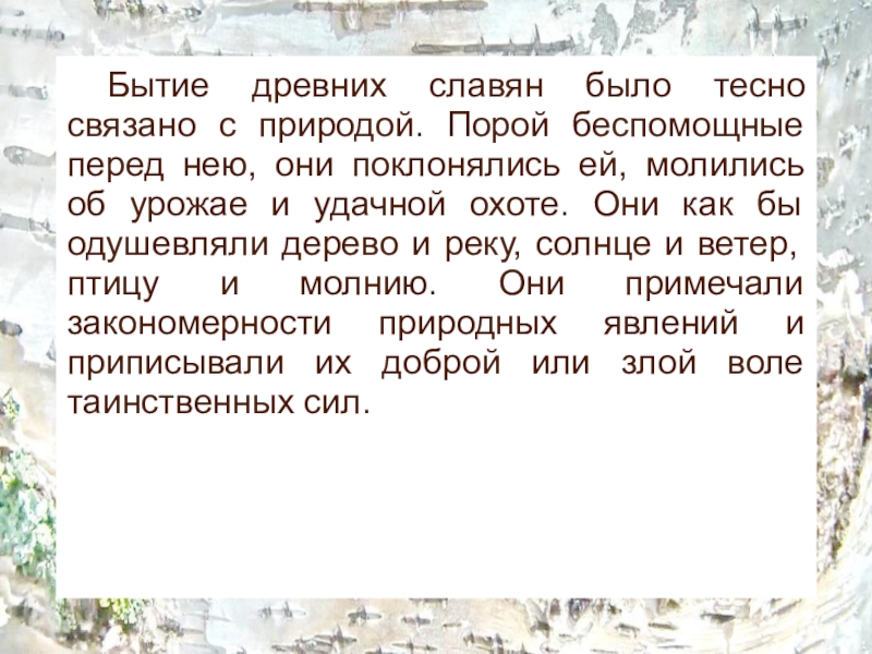 Бытие древних славян было тесно связано с природой. Порой беспомощные перед