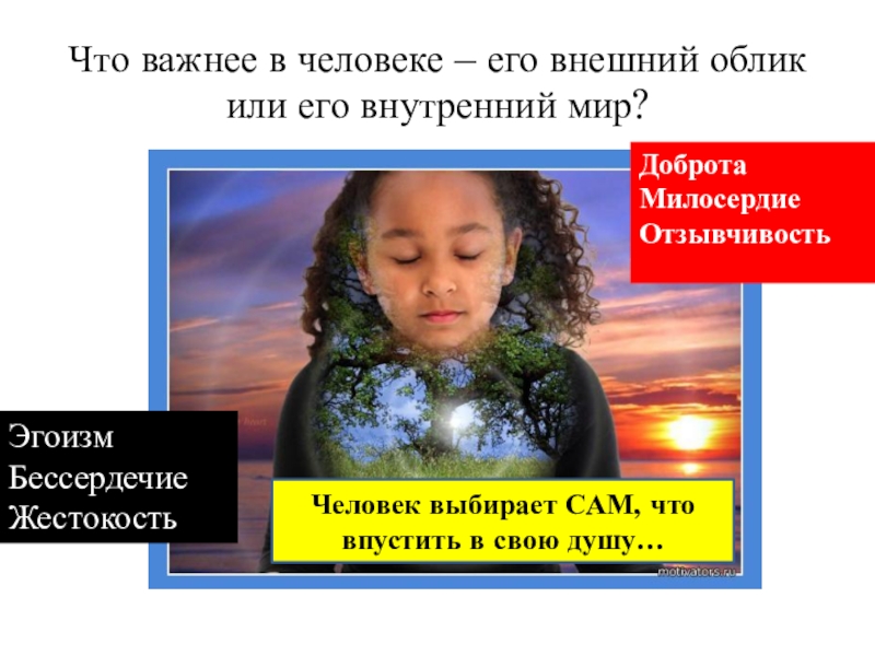 Внутренний мир человека (ДУША) : ЭТО чувства, мысли, эмоции, идеалы, воспоминания и т.д