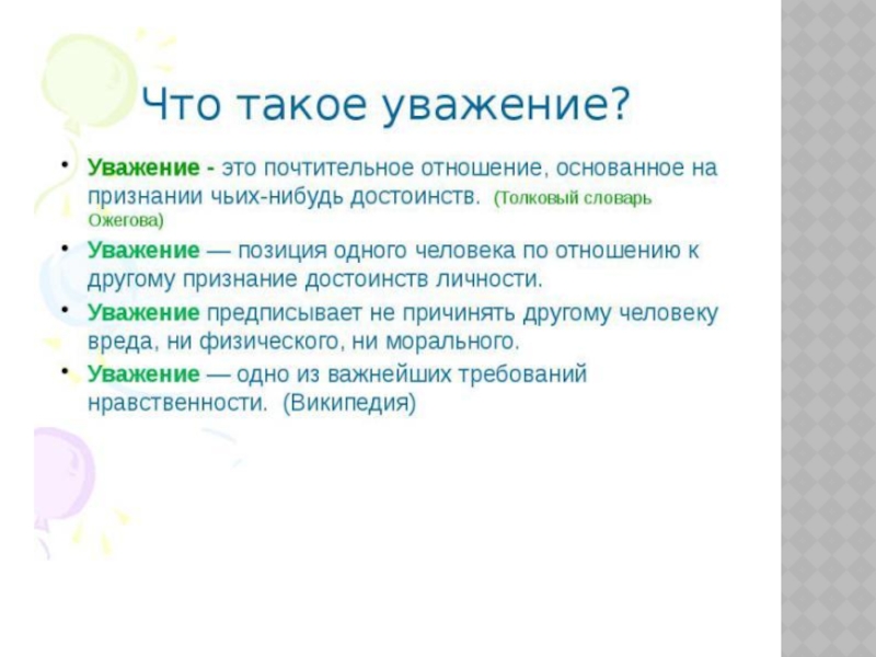 Уважение к другим,
