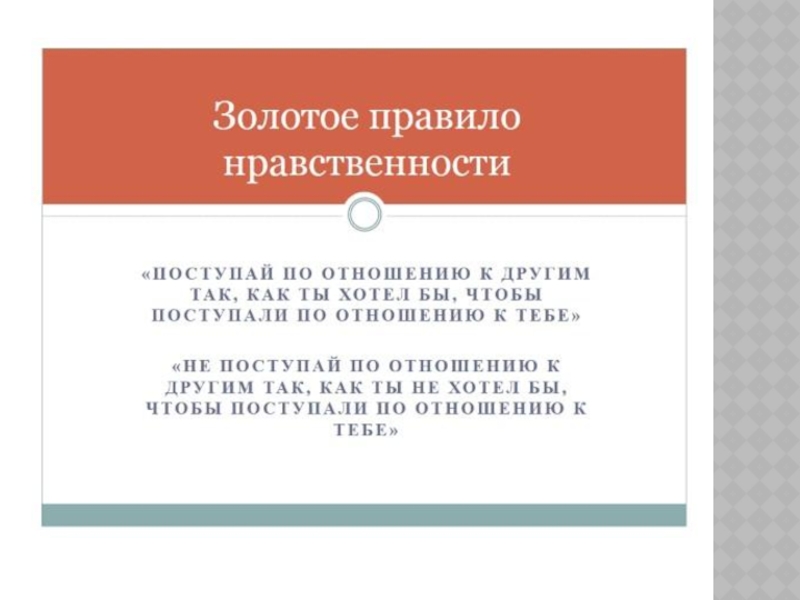 Уважать всякого человека, как самого себя, и поступать с ним, как мы желаем, чтобы с нами поступали,