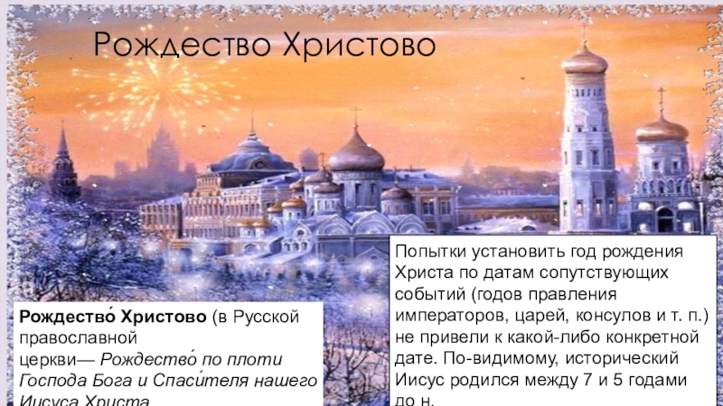 Попытки установить год рождения Христа по датам сопутствующих событий (годов правления императоров, царей, консулов и т. п.) не привели к какой-либо конкретной дате. По-видимому, исторический Иисус родился между 7 и 5 годами до н.