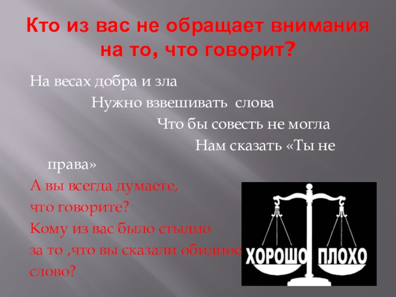 Кто из вас не обращает внимания на то, что говорит?На весах добра и зла