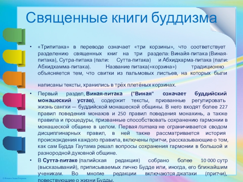 «Трипитака» в переводе означает «три корзины», что соответствует