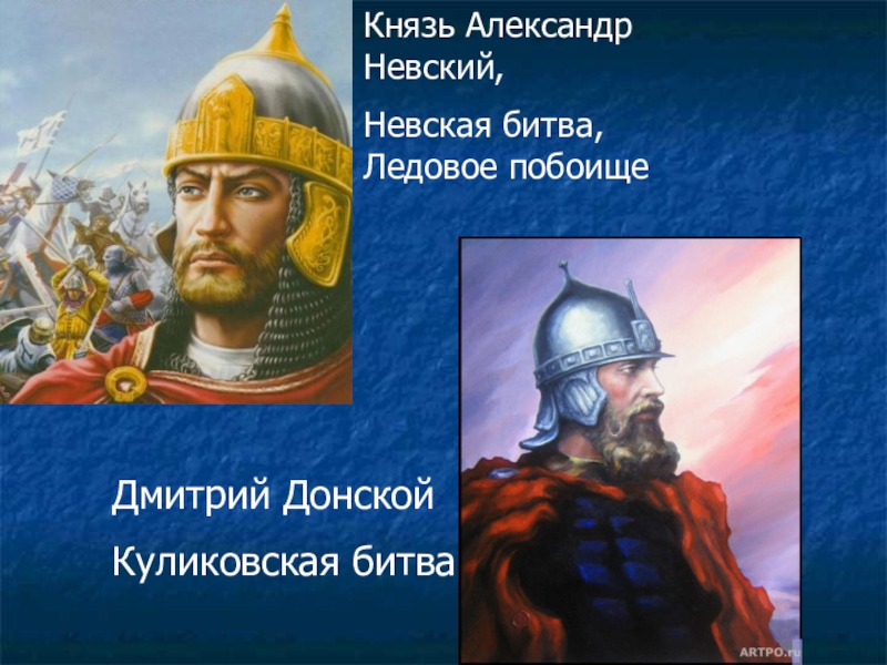 Князь Александр Невский,Невская битва, Ледовое побоище Дмитрий ДонскойКуликовская битва