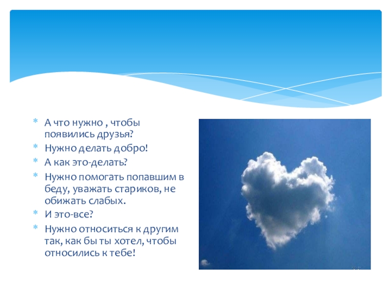 помогать попавшим в беду, уважать стариков, не обижать слабых.