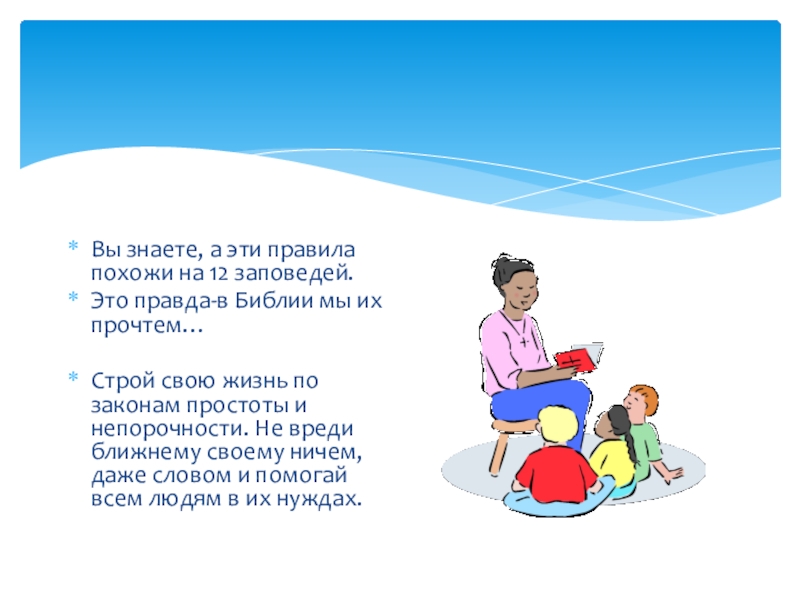 Слайд 8Вы знаете, а эти правила похожи на 12 заповедей.