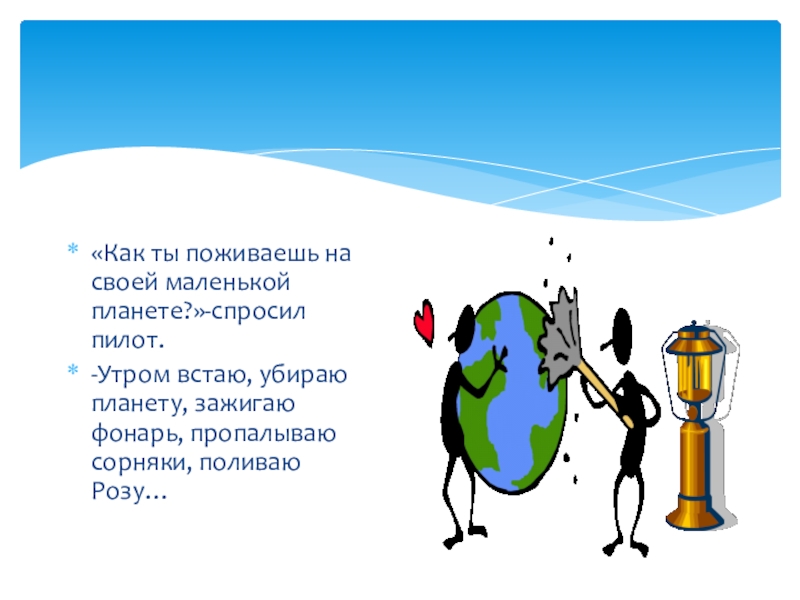 Слайд 5«Как ты поживаешь на своей маленькой планете?»-спросил пилот.