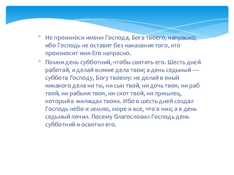 Слайд 16Не произноси имени Господа, Бога твоего, напрасно; ибо Господь не оставит